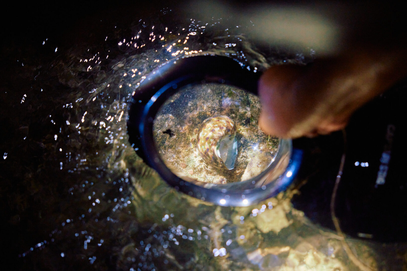 冬季の夜に現れる海の中心に伸びた浅瀬のリーフを歩く神秘的な体験。運が良ければ寝ている魚や貝、満天の星空と共に贅沢な夜の時間を。