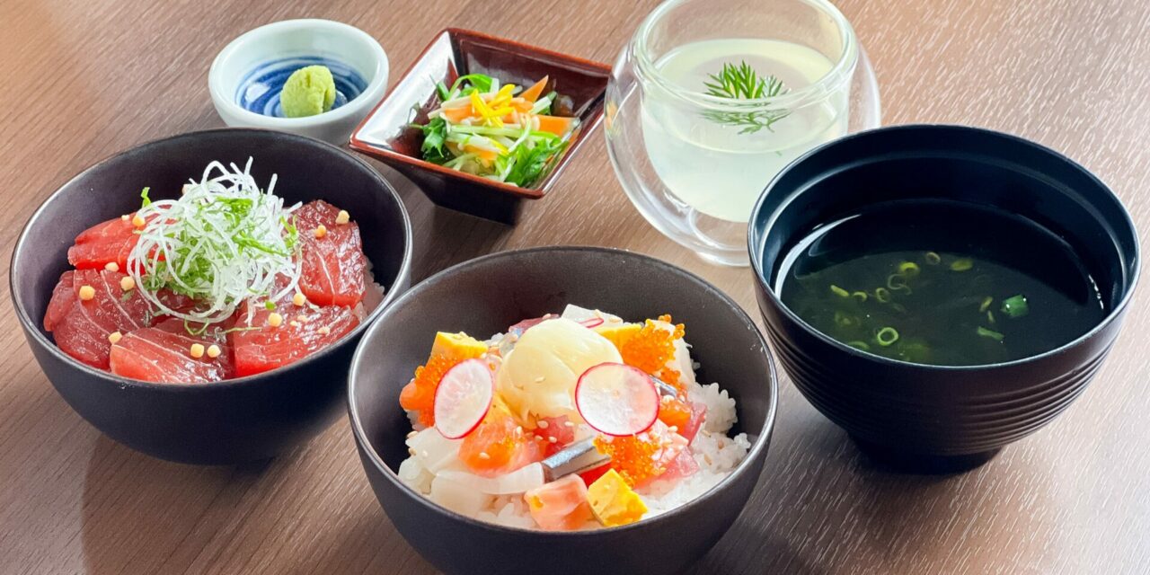 窓一面に広がる海を眺めながら、和食の丼や洋食のワンプレートランチをお召し上がりいただけます。