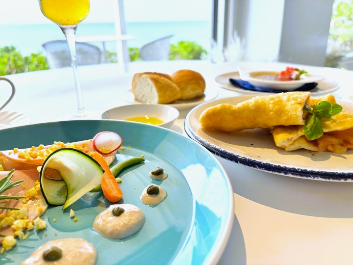 オーシャンビューのリゾートレストランで、春の日差しに照らされたヨロンブルーの海を眺めながら優雅なランチタイムはいかがですか?